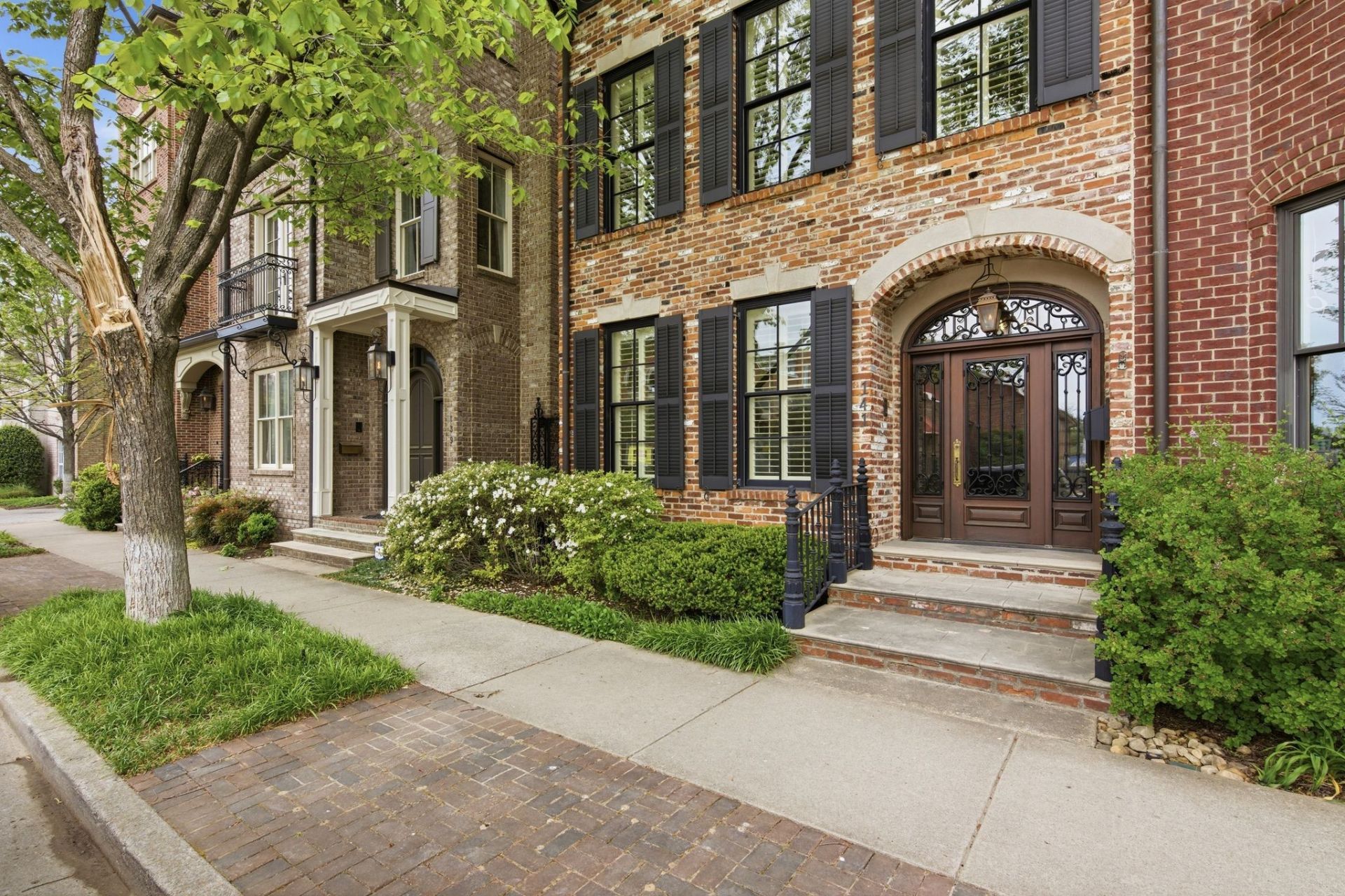Stunning home in a gated community in the heart of Downtown Franklin, TN. This expansive 3-bed, 3.5-bath residence spans four levels with dramatic 12-ft ceilings throughout and an elevator servicing every floor. Thoughtful design includes two outdoor living areas and a family/den just off the kitchen with custom built-ins, a wall of windows opens to a covered patio, and Four gas fireplaces (main level, second level, outdoor patio and primary suite). The custom kitchen features handcrafted cabinets, a Sub-Zero refrigerator, warming drawer and pot filler. The primary suite occupies the entire 4th floor and offers a welcoming outdoor living space, walk-in closet and dedicated laundry. Practical upgrades include 2 HVAC units, fresh interior paint, and a 3 year old roof. Exterior brick was reclaimed from the historic 'Chattanooga Choo-Choo railway building. Two-car garage. A rare combination of downtown convenience, historic character and modern luxury.