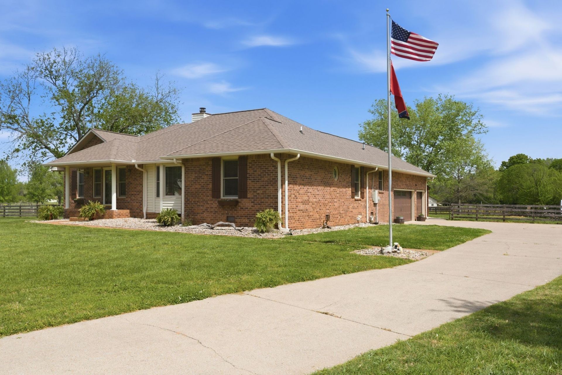 One-level living on a flat 2.8-acre lot tucked away on a private cul-de-sac. This home features an open, light-filled floor plan and a large patio overlooking the fenced backyard. Convenient access to I-24.