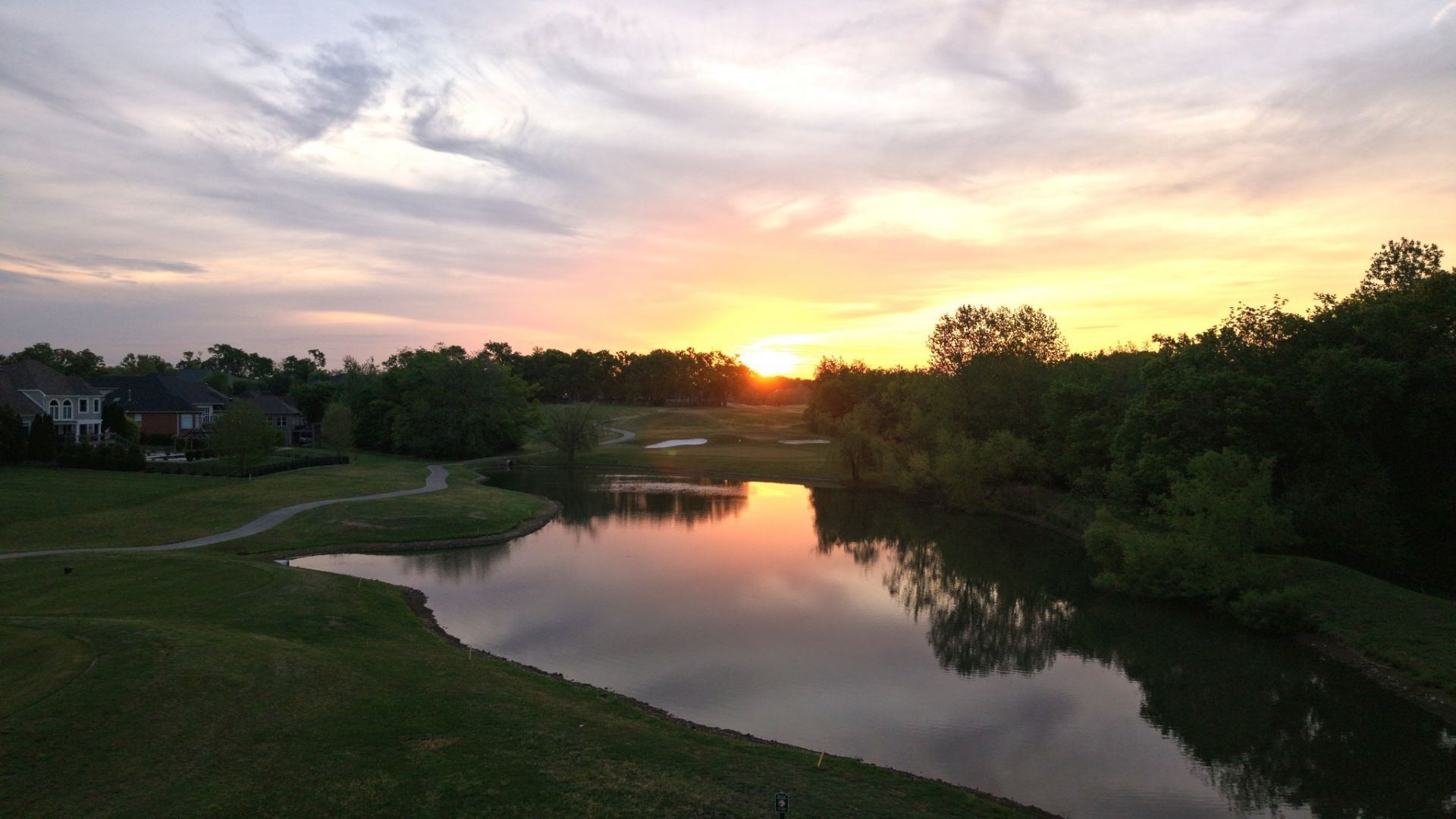 Imagine waking up to stunning sunrise views over the 13th hole at Five Oaks Golf and Country Club, with a peaceful pond creating a serene backyard. Step inside to soaring ceilings and warm wood accents adding timeless architectural charm. The light-filled open layout brings the living room to life with beautiful built-in bookshelves and gas fireplace. Enjoy preparing meals and making memories in the stunning chefs dream kitchen with upgraded THOR commercial appliance package. The elegant primary suite offers a true retreat, showcasing a gorgeous coffered ceiling and an elegant en-suite bath with and oversized walk-in shower featuring dual showerheads and a soaking tub perfect for relaxation. Also on the main level, a private secondary bedroom with its own en suite bath offers comfort for guests. Upstairs, is still practically brand new, you'll find three spacious bedrooms, one with en-suite bath in addition to an extra large bonus room over the garage offering flexibility for any lifestyle. Step outside to the covered patio, complete with stamped concrete and a gas fireplace, where you can unwind and take in views that are truly hard to come by.