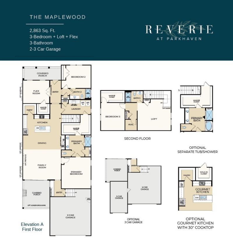 GRAND OPENING at Reverie at Parkhaven by Dream Finders Homes! Discover exciting new opportunities, including the beautifully designed Maplewood floor plan. This thoughtfully crafted two-story home offers 3 bedrooms, 3 bathrooms, a spacious loft, and approximately 2,863 sq ft of well-designed living space. Enjoy open-concept living ideal for both everyday comfort and entertaining. The main living area features a cozy indoor fireplace, while the outdoor fireplace creates the perfect extension for year-round enjoyment. The gourmet kitchen is designed to impress, complemented by a functional drop zone for everyday convenience. The primary suite showcases a zero-entry shower for a sleek, spa-like feel. Top-of-the-line included features such as gas cooking, tankless water heater, quartz countertops, and tiled wet areas elevate the home's style and efficiency. Experience low-maintenance active adult living with resort-style amenities, including a community pool, pickleball and tennis courts, dog park, walking trails, and a clubhouse featuring a fitness center and yoga studio.Photos are for illustrative purposes only. Incentives available with use of preferred lender and title company. Please see on-site agent for full details.