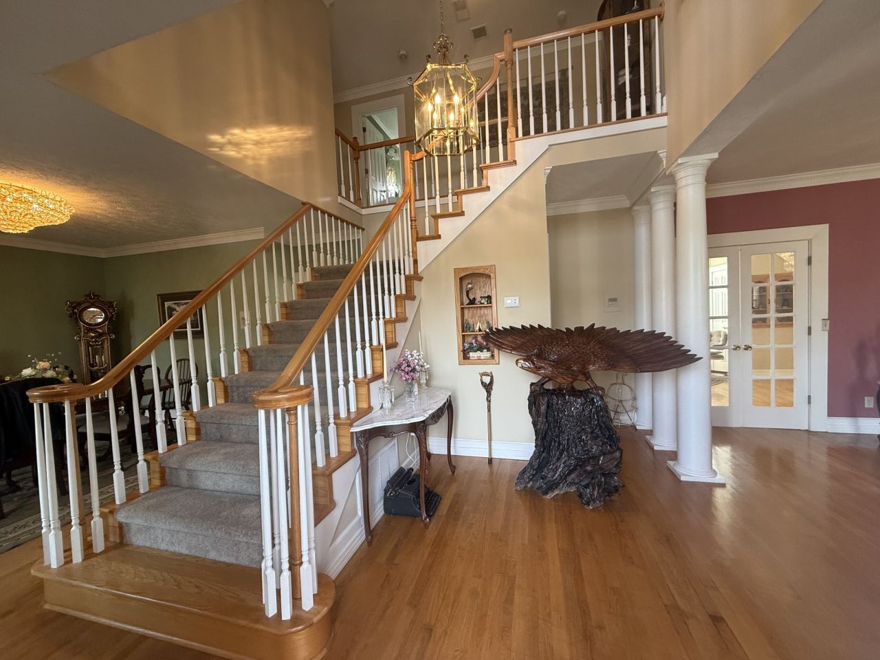 Stunning Southern estate featuring a home over 4,000 sq ft. Offering complete privacy and thoughtful upgrades, it provides the perfect balance of elegance and space. Showcasing true Southern charm, it boasts a winding staircase, heavy moldings, soaking tubs, custom-made cabinets, bookcases, a wet bar crafted by local Mennonites, antique light fixtures, and luxury Italian marble finishes in the master bathroom. The kitchen includes custom cabinetry and granite countertops, a functional island ideal for entertaining, with convenient access to the dining or family rooms. The family room offers built-in cabinetry, a fully equipped wet bar with ample countertop space, and an intercom system with stereo, making it ideal for family gatherings. The exterior requires minimal maintenance, with a lifetime roof and siding warranties, three HVAC systems, a private well, an oversized garage, and a security camera system. Sitting on 10.62 acres, the property features a fully stocked pond, a three-stall barn with a hayloft, a workshop with a wood-burning stove, and a zip line over the pond. Located on a private, wooded, open-land lot with scenic views, this property is perfect for those seeking space to roam, a mini-farm lifestyle, or simply extra room to enjoy the open back porch or upstairs balcony while watching wildlife. Breathtaking privacy conveniently situated in a well-established and highly desirable West Tennessee neighborhood!