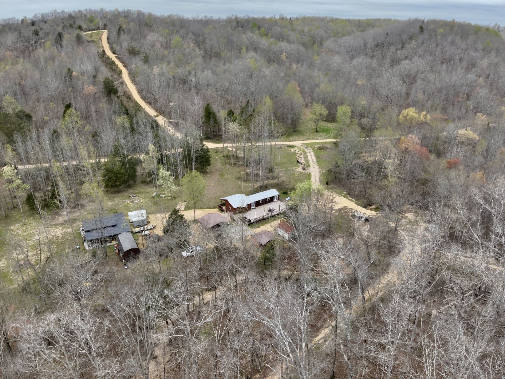 Private Tennessee Cabin Retreat in Gated Community on 46.7 Acres with a Dream Shop, Large Entertaining Deck & Multi-Building Setup. Meticulously maintained property with trail system throughout, multiple springs, and amazing views of the valley. 2 Bedrooms with an office and 1 bathroom. Expansive sun deck off the back of the home that has been reinforced to hold as many as you can gather. Tongue and groove pine throughout the inside of the home gives a warm and inviting feel. The 30X40 Shop has covered porches on each side where you can relax and take in the sounds of nature, entertain friends, or work on projects. Multiple outbuildings for storage or a children's playhouse where imaginations can run wild. Home has upgraded electrical wiring including four breakers on the pole, separate boxes for the well, the shop, the sheds, and the electric has been ran underground from the pole to the Cabin. This home also has upgraded spray foam in the walls, attic, and underneath. Only a handful of people live in this secure, gated community and they consider each other family. Less than 10 min from Crooked Creek Marina. Come see what dreams may come with this one of a kind property!! Drone footage to come!!
