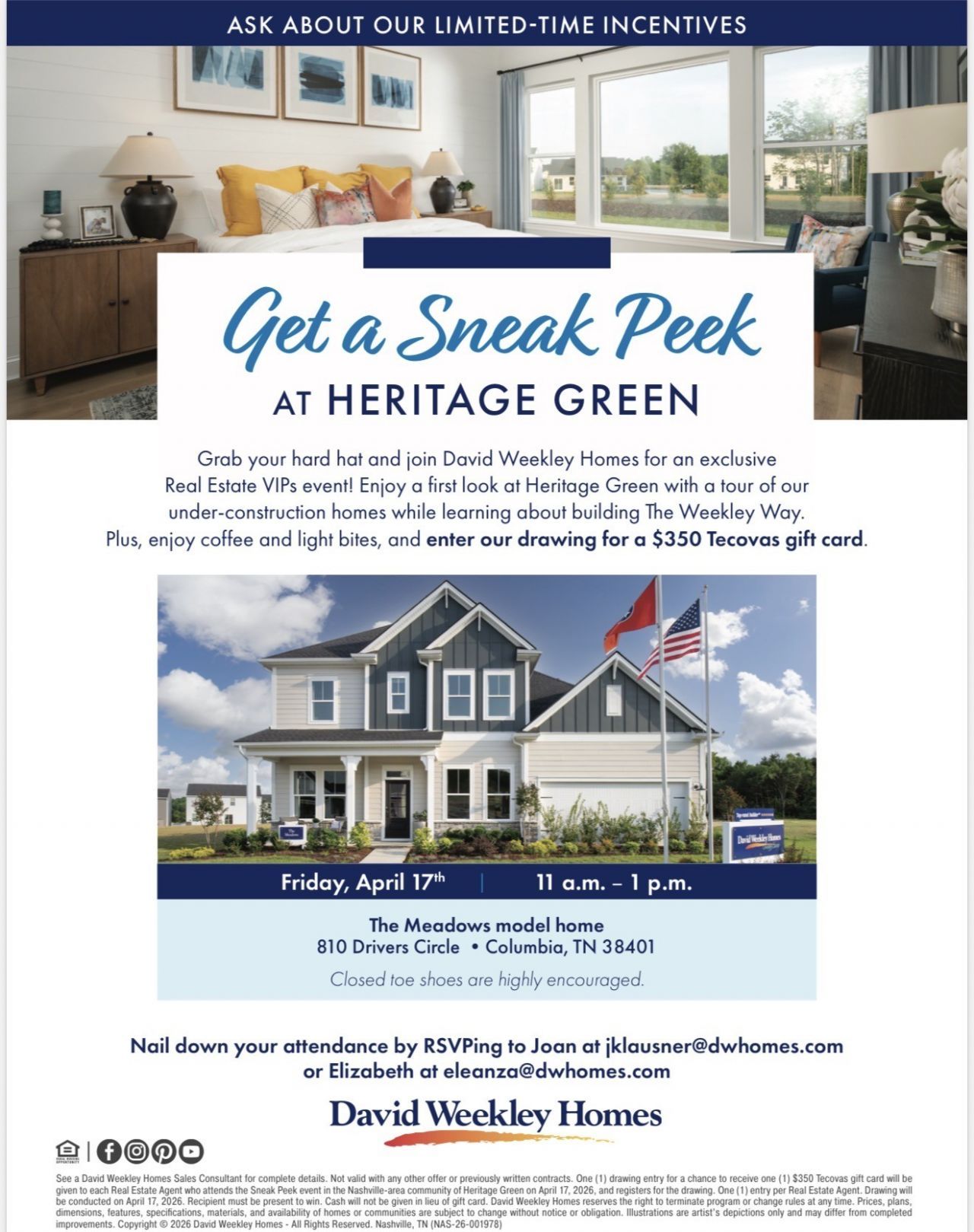 GRAND OPENING INCENTIVES - Heritage Green at Columbia TN Opens May 15th! Meet The Parton floorplan-where style, light, and livability come together. Built by award-winning David Weekley Homes, one of America's largest privately-held builders. There is a reason we're celebrating 50 years in the business! This floorplan shines with Oversized windows that fill the home with an abundance of natural light, and open-concept living that makes every day feel a little brighter. The first floor is made for gathering, featuring seamless living spaces and a covered front porch just off the elegant kitchen which showcases Miami Vena white quartz countertops, Mesa cream-toned cabinetry, Gas Range, and champagne bronze hardware-perfect for morning coffee or entertaining. Upstairs, all bedrooms offer a private retreat including a standout Owner's suite with its own balcony deck. The Owner's Bathroom Suite offers a spa-like retreat, showcasing a Super shower adorned with polished off-white wall tile for a refined, elegant finish. All of this in a community centered around connection, with parks to explore and the energy of Downtown Columbia just minutes away. Ready to see it for yourself? Connect with a David Weekley Homes team member today!