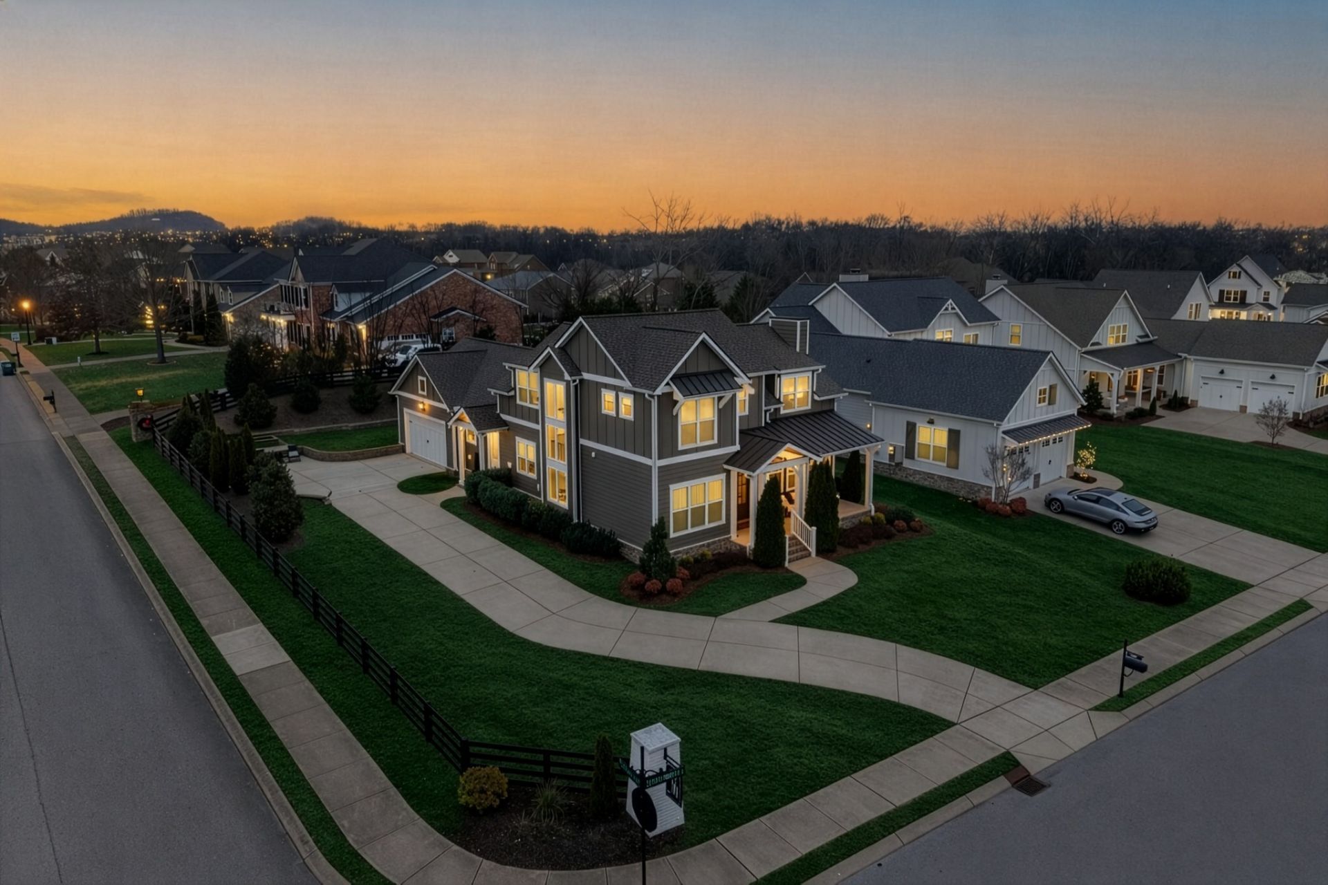 Situated in a desirable, boutique neighborhood in Williamson County, this home has the Wow factor showcasing stunning architecture, character, and fine touches throughout: Restoration Hardware, Pottery Barn, Graham's Lighting fixtures- hardware & draperies remain - Highly walkable location- dining, Harvey park, sidewalks and retail! The moment you step inside, you feel at home. High ceilings give a grand impression that you have to see in person. Welcoming entry, wood flooring throughout home, accent walls, living room w/ fireplace, primary and secondary bedroom/office on the main level. Secondary bath offers walk-in tiled shower and designer wall paper. Open designed, spacious kitchen with generous island, leathered granite countertops, wall oven, walk-in pantry, and gas cooktop -overlooking a dedicated dining area. Primary suite with vaulted ceiling. Spa-like Primary bath- extensive quartz dual vanity, freestanding tub, and extended, tiled shower. Floating design staircase leads to thoughtfully laid out upper level. Recreation room (or 5th BR) with walk-in closet and private bath. 2 Additional Bedrooms- Jack-Jill Bath w/ private vanity areas. Exterior features a side tower with windows, and friend's entry, tasteful landscaping, lighting, firepit, front porch, and covered entertainer's porch. This home and neighborhood are not cookie cutter! Come and see the difference! Zoned for new Amanda North elementary school! *up to $10,000 Lender Incentive with Hilary Hollingsworth-Modern Mortgage 615-236-6054 for qualified buyers to use for closing costs or rate buy down! Quick Closing- move right in!